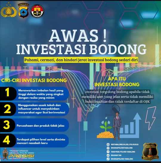 Informasi penting, Selalu periksa mutasi rekening secara langsung, pastikan dana benar-benar masuk ke rekening, karena penipu sering menggunakan bukti transfer palsu. Waspadai ciri-ciri investasi bodong, seperti janji atau iming-iming keuntungan besar yang tidak wajar dalam waktu singkat, atau janji tanpa risiko, karena dalam hal investasi bisa saja terjadi kemungkinan resiko.